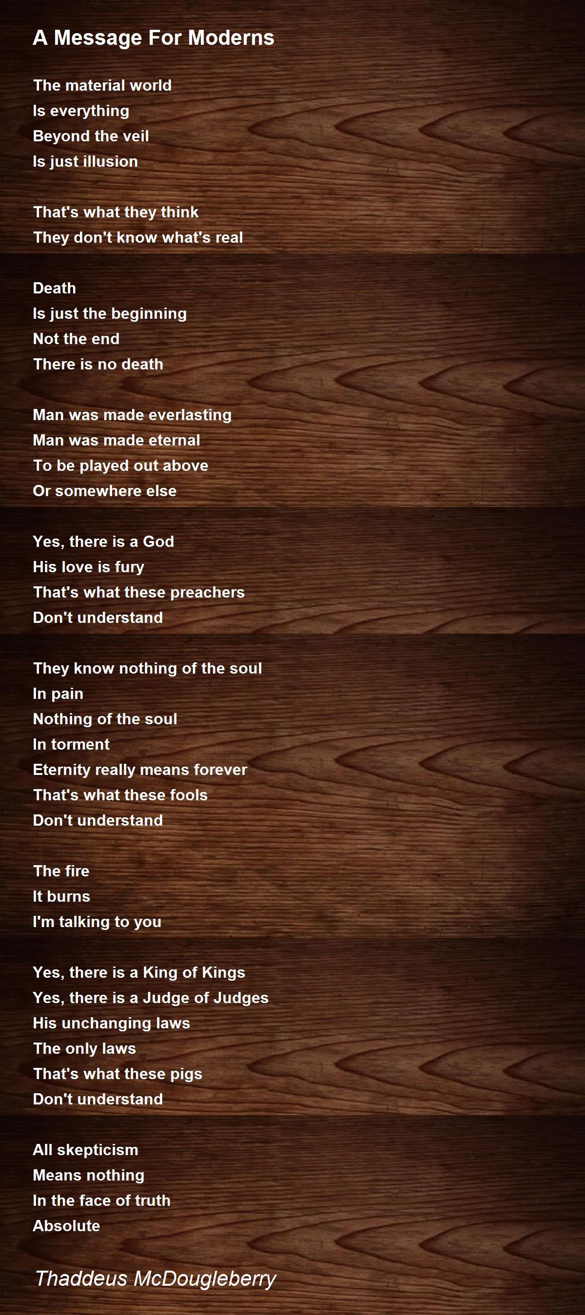 Not all moderns are christians, excellent poem, powerfully worded. Brilliant!