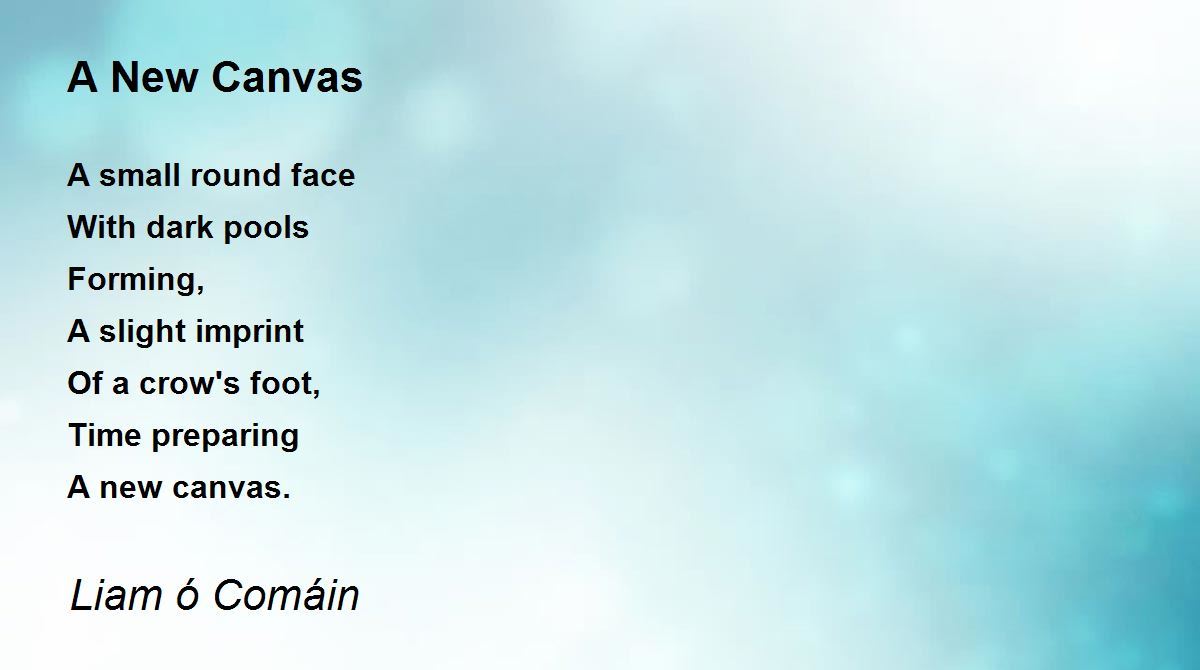 A small round face With dark pools Forming, A slight imprint Of a crow's foot, Time preparing A new canvas.
