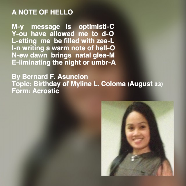 A note of hello will always make the heart flutter. A heartwarming acrostic write.