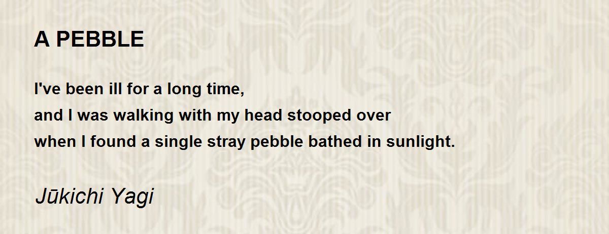 I've been ill for a long time, and I was walking with my head stooped over when I found a single stray pebble bathed in sunlight.