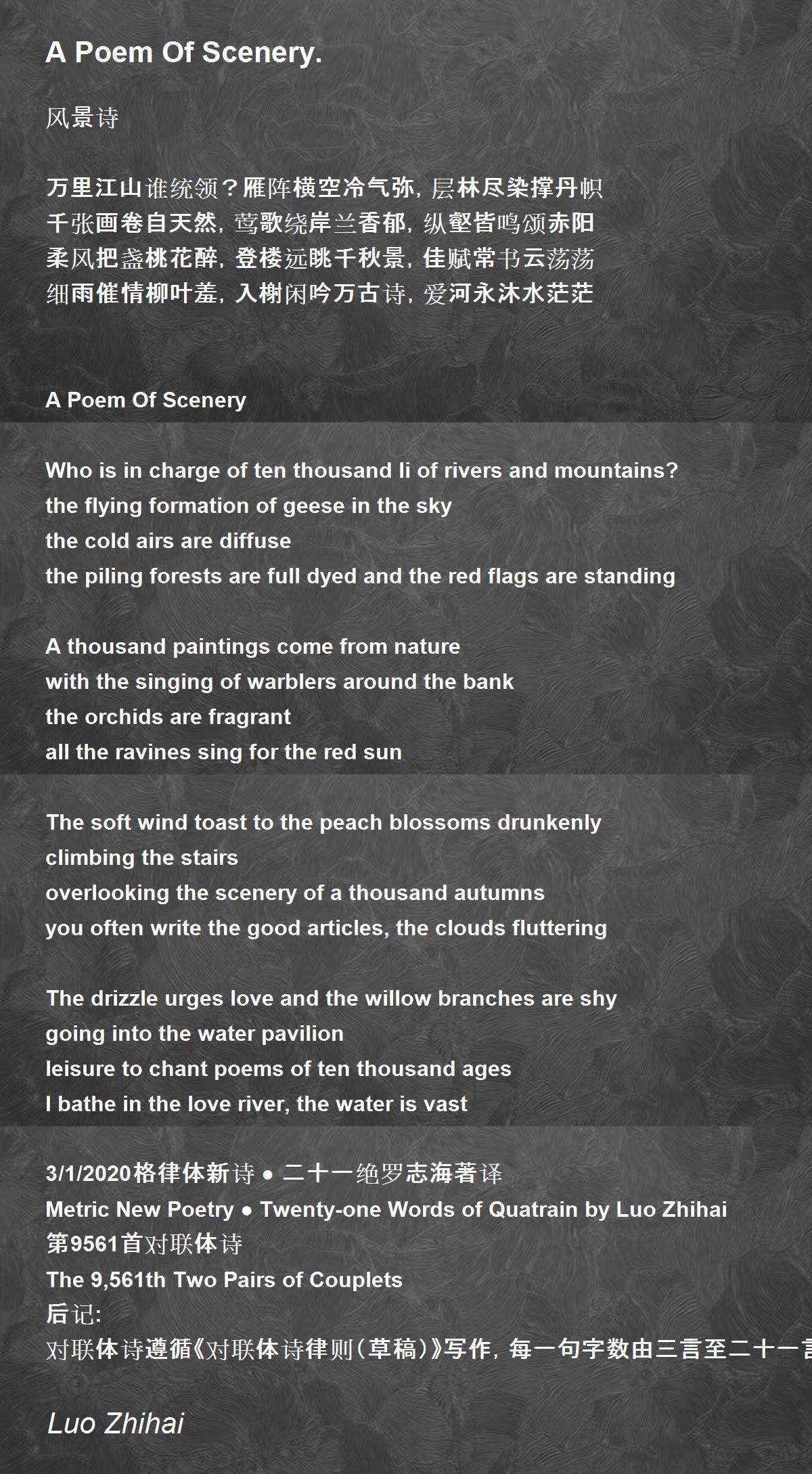 Metric New Poetry ● Twenty-one Words of Quatrain by Luo Zhihai