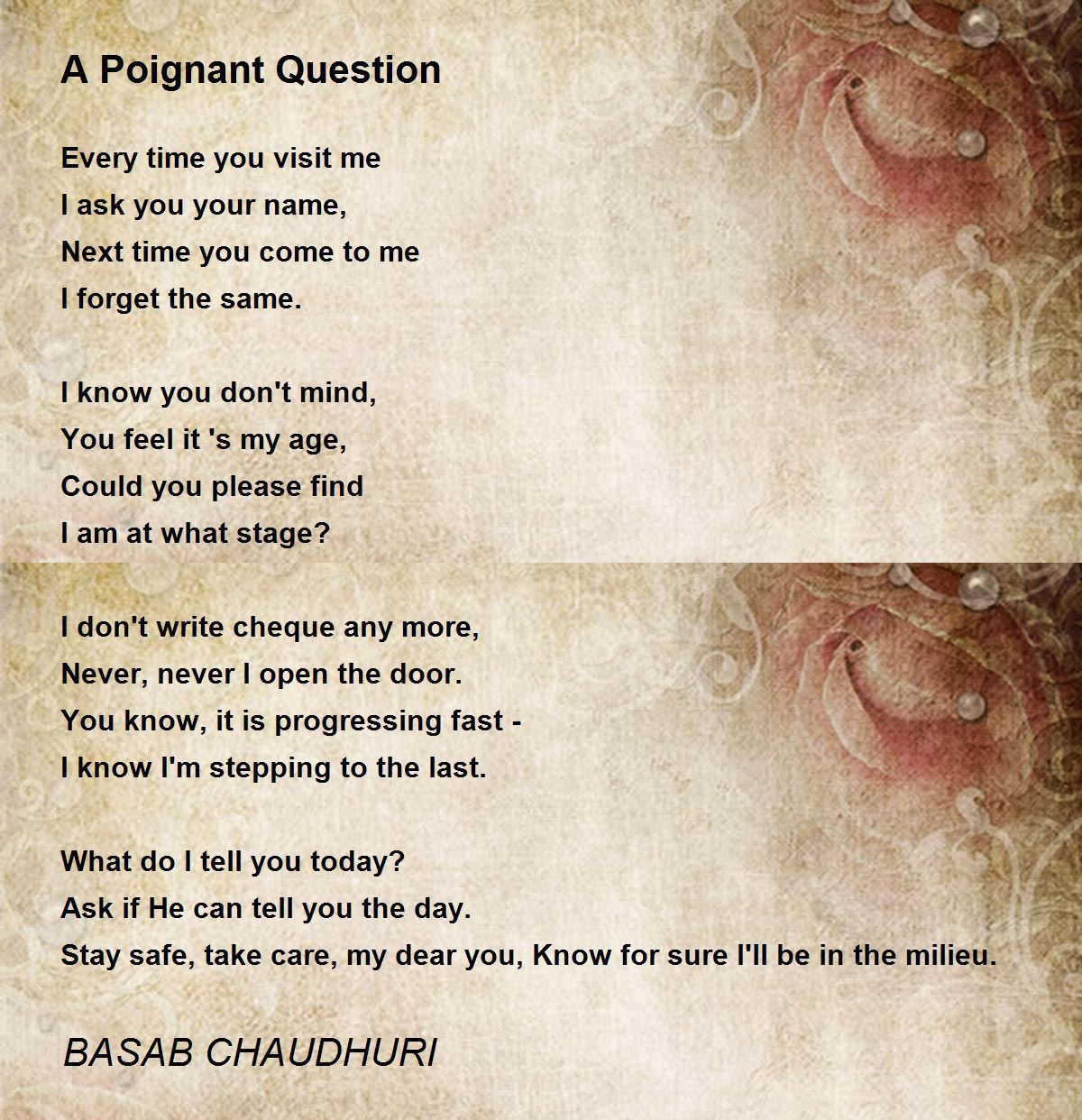 Stay safe, take care, my dear you, Know for sure I'll be in the milieu.