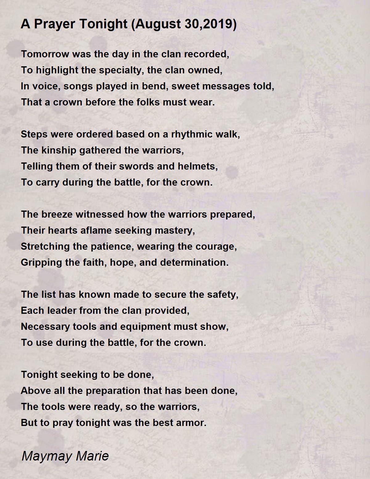 But to pray tonight was the best armor.