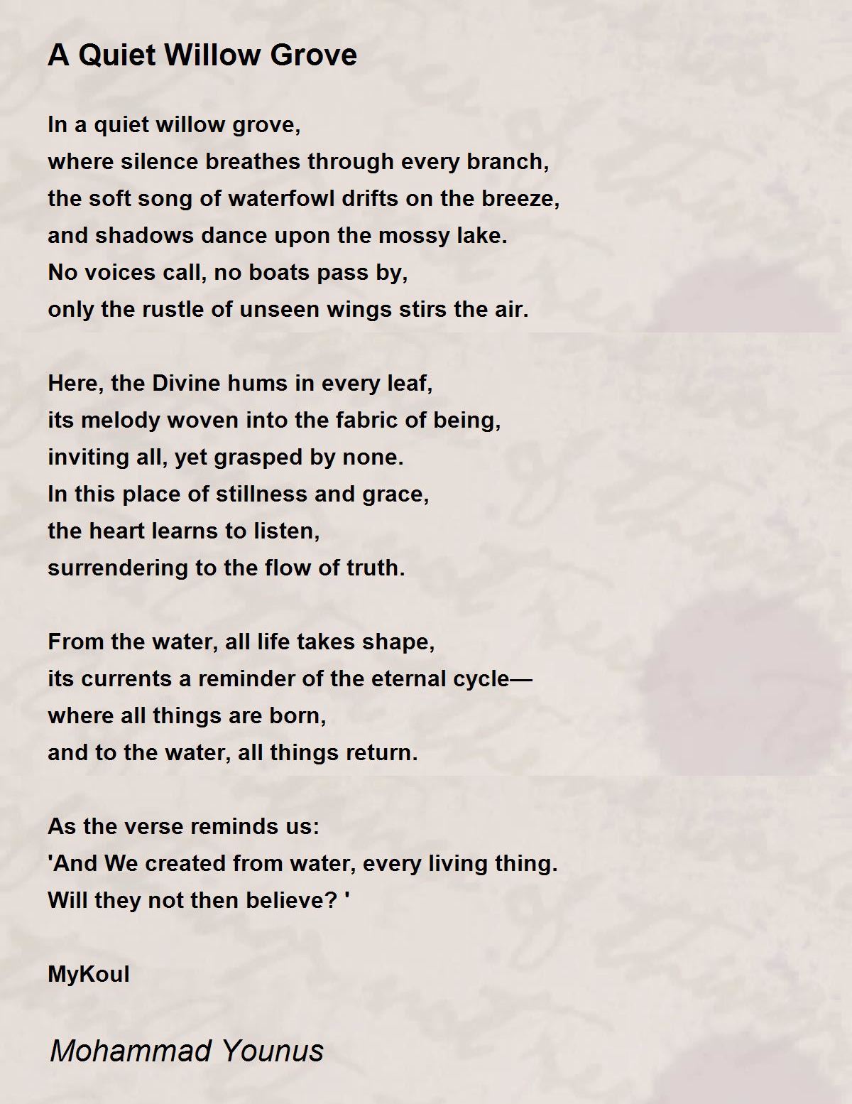 In a quiet willow grove,