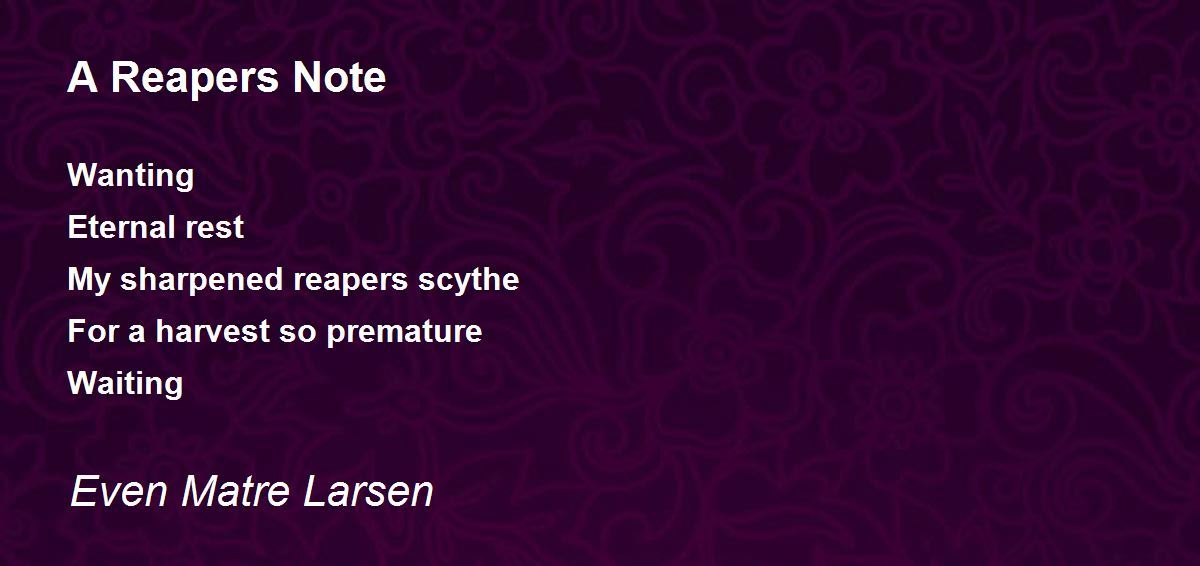 Second poem. I'm trying to see from a reapers perspective in the context of suicidal thoughts. I see a note left on a bed after a rough night. I am completely fine lol. I know these feeling well but am growing and getting better ❤️
