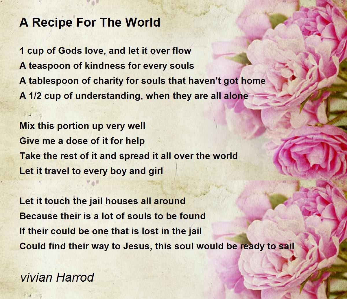 1 cup of Gods love, and let it over flow