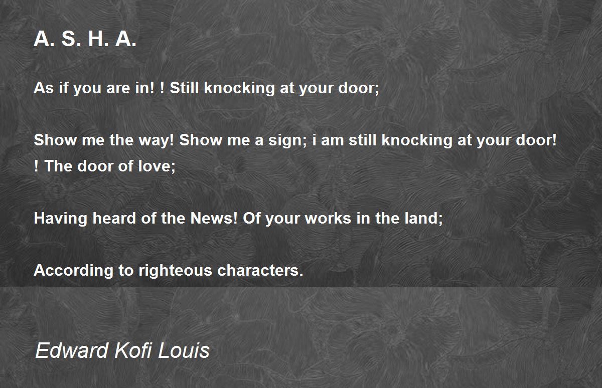 Show me the way! Show me a sign; i am still knocking at your door! ! The door of love;