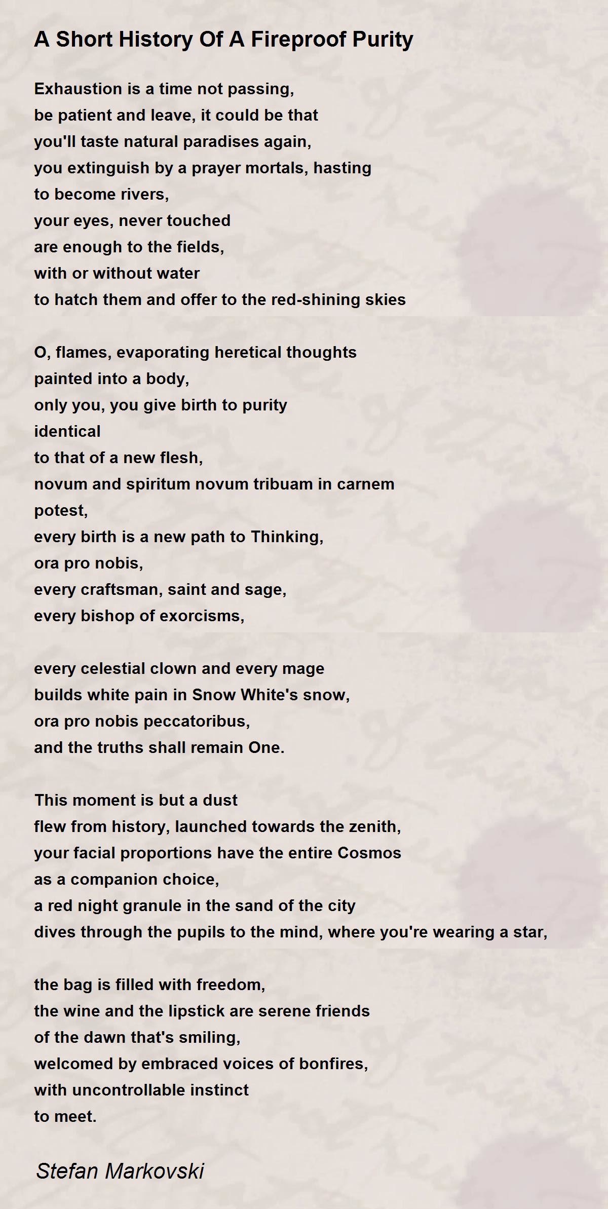 O, flames, evaporating heretical thoughts