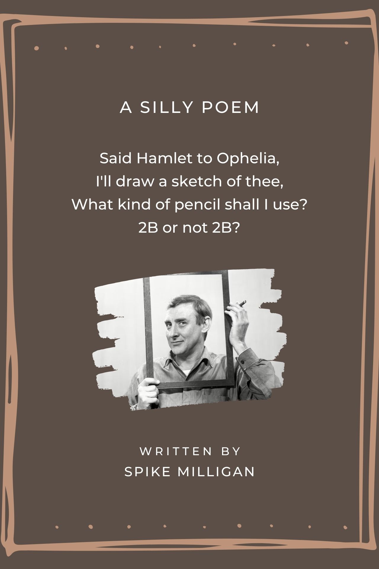Said Hamlet to Ophelia, I'll draw a sketch of thee, What kind of pencil shall I use? 2B or not 2B?