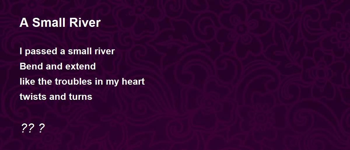 I passed a small river Bend and extend like the troubles in my heart twists and turns