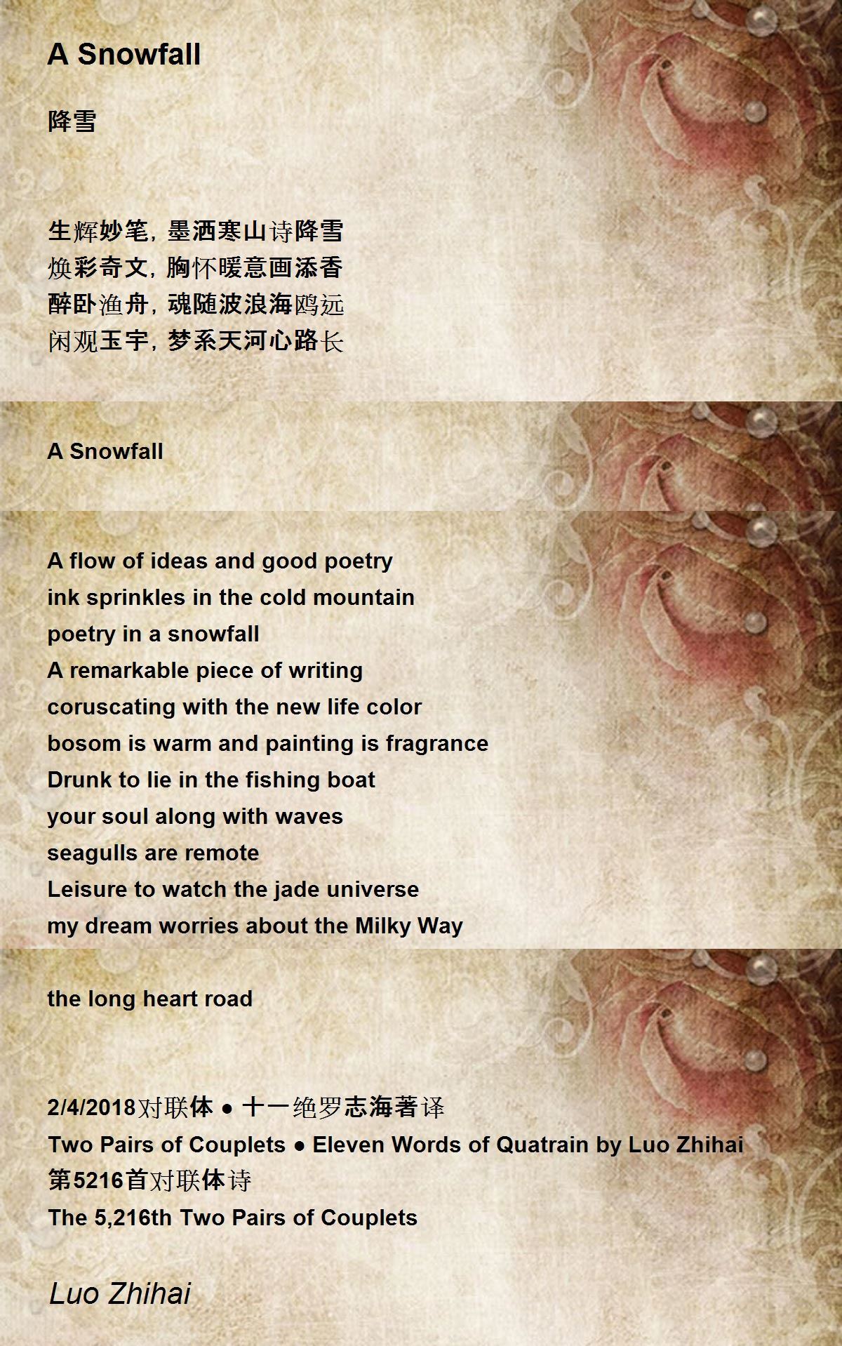 Two Pairs of Couplets ● Eleven Words of Quatrain by Luo Zhihai