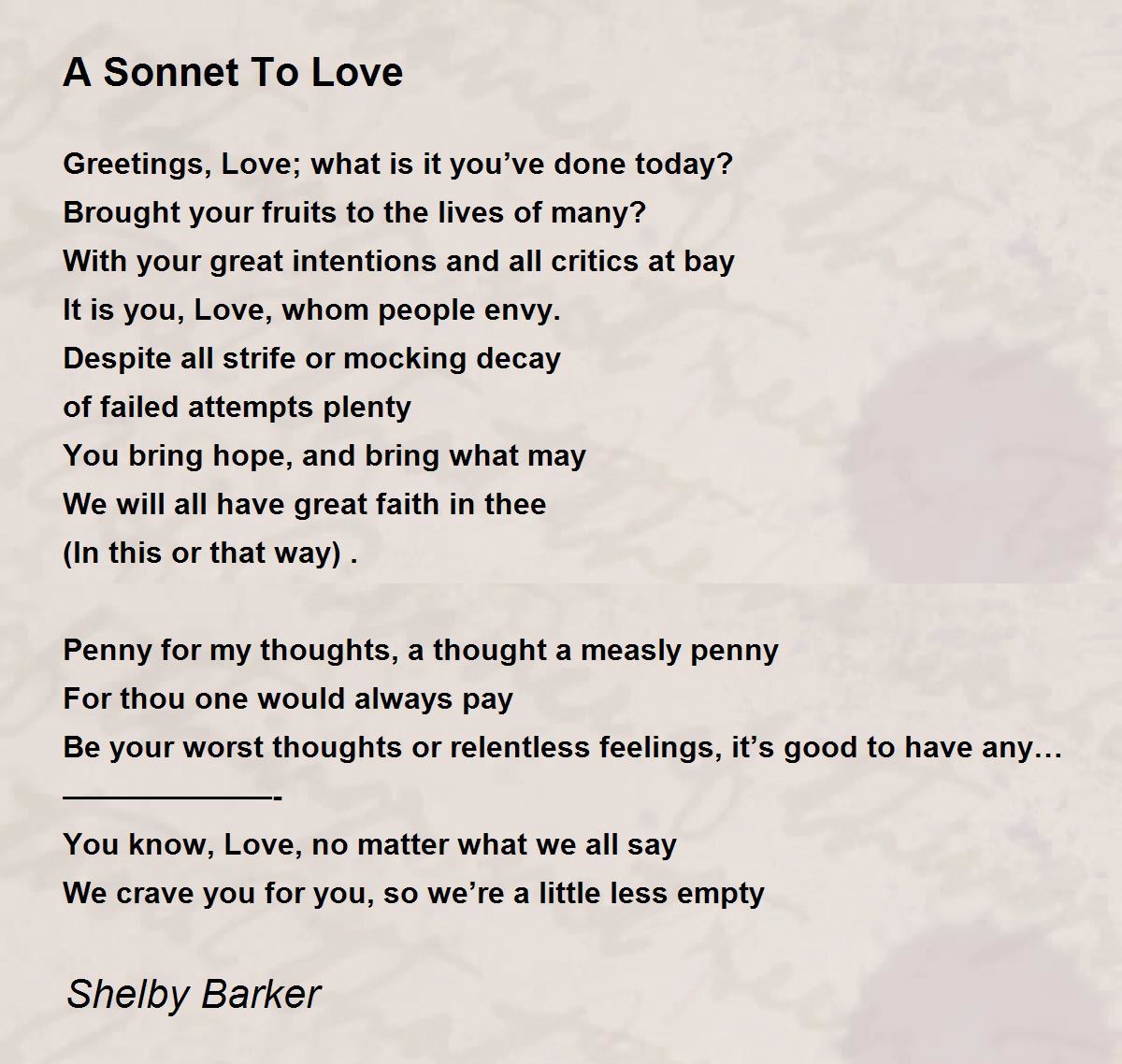 You know, Love, no matter what we all say