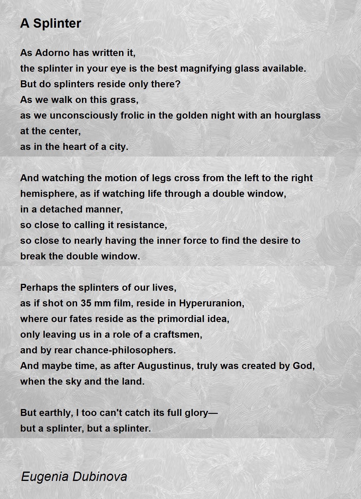 but a splinter, but a splinter.
