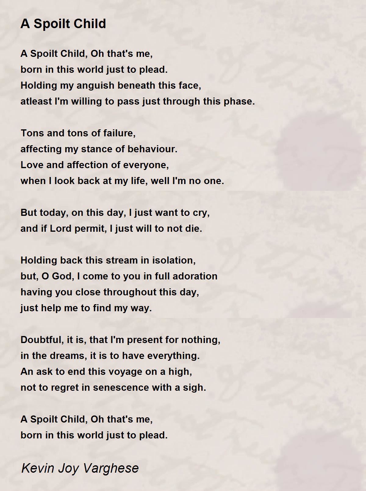 A Spoilt Child, Oh that's me,