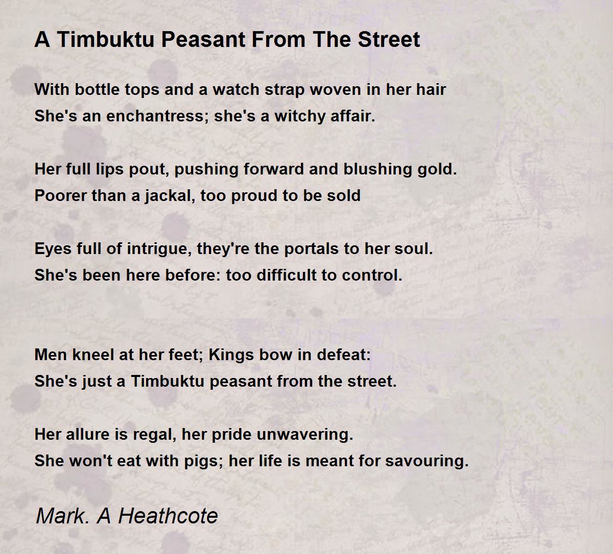 She's just a Timbuktu peasant from the street.