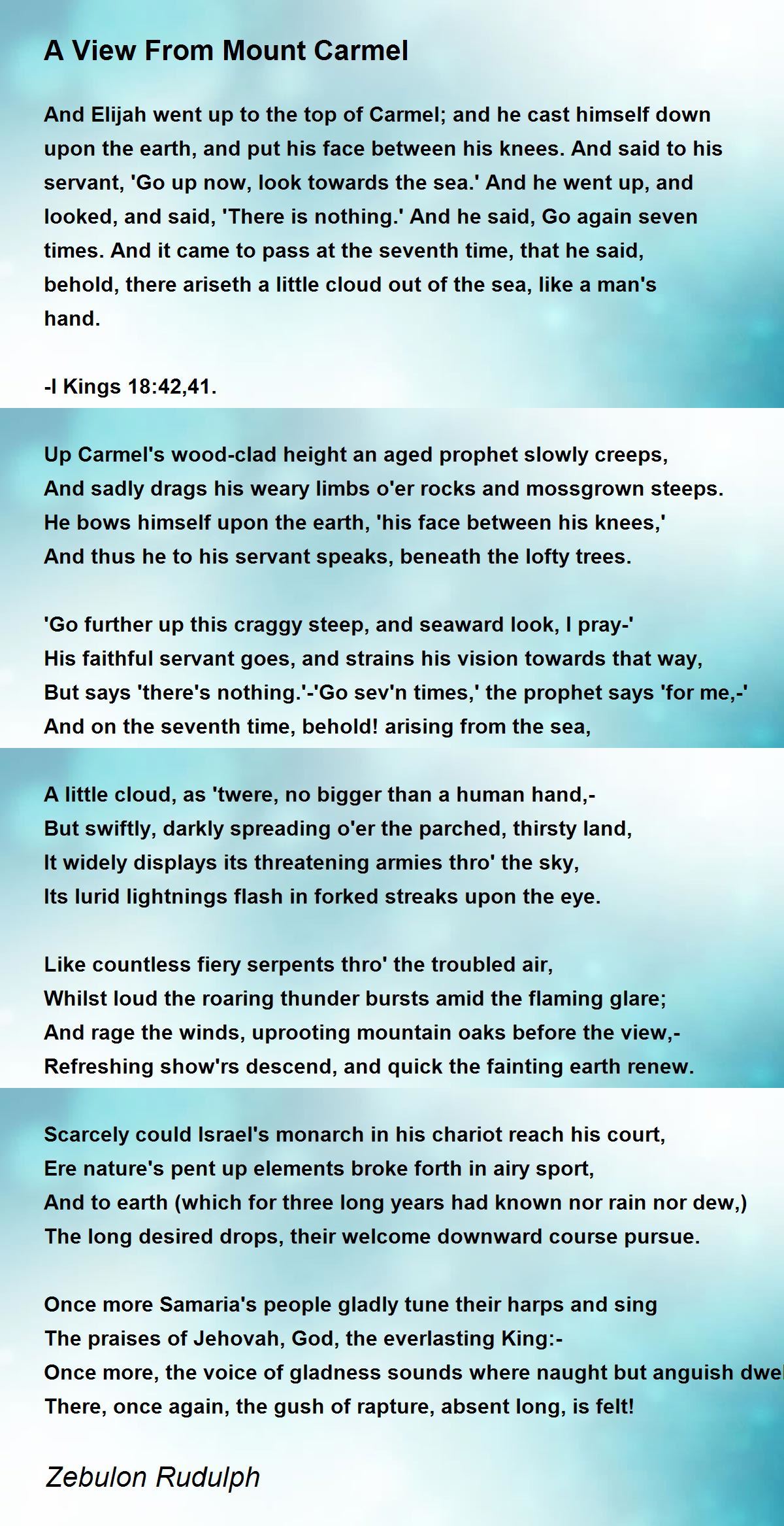 Up Carmel's wood-clad height an aged prophet slowly creeps,