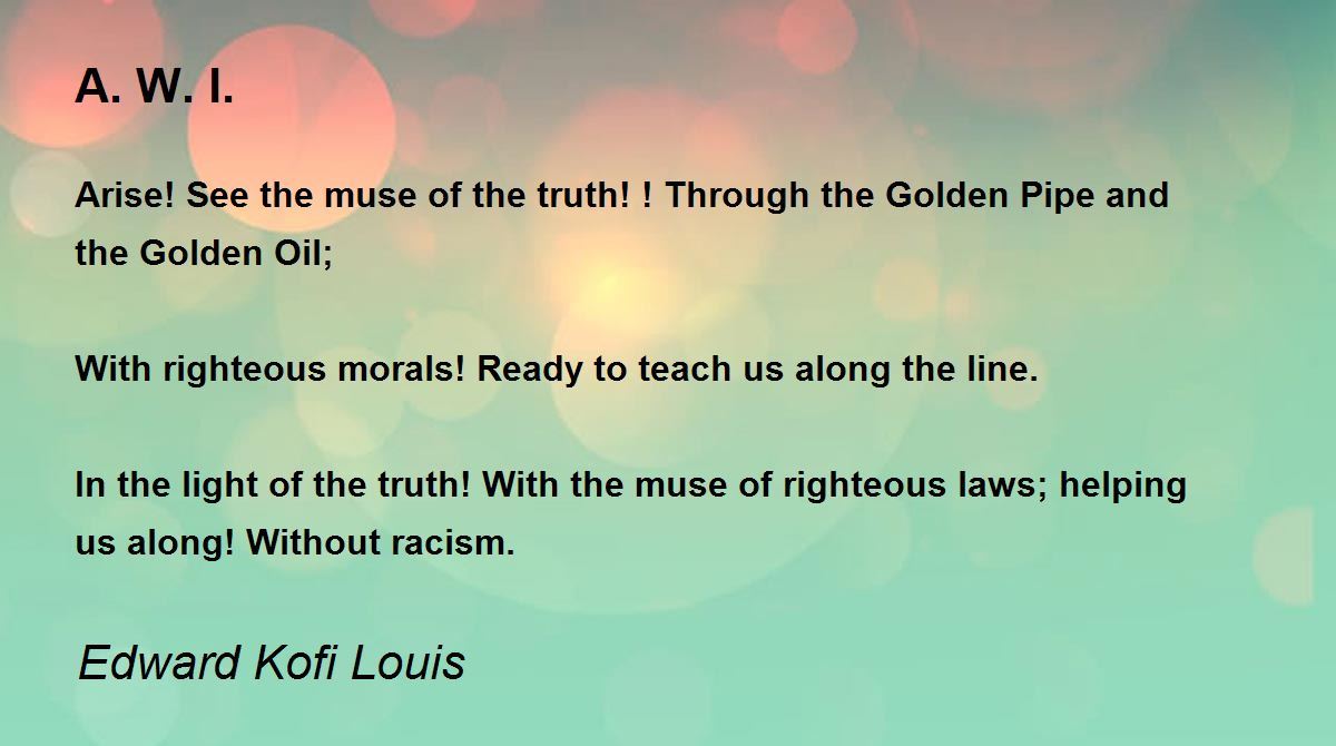 Arise! See the muse of the truth! ! Through the Golden Pipe and the Golden Oil;