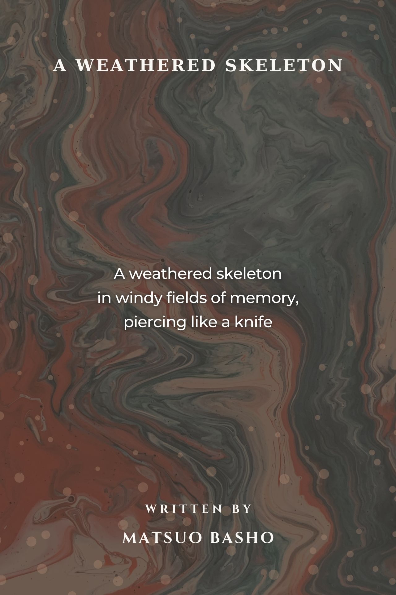 (A Weathered Skeleton by Matsuo Basho.) **What a scene, so piercing.