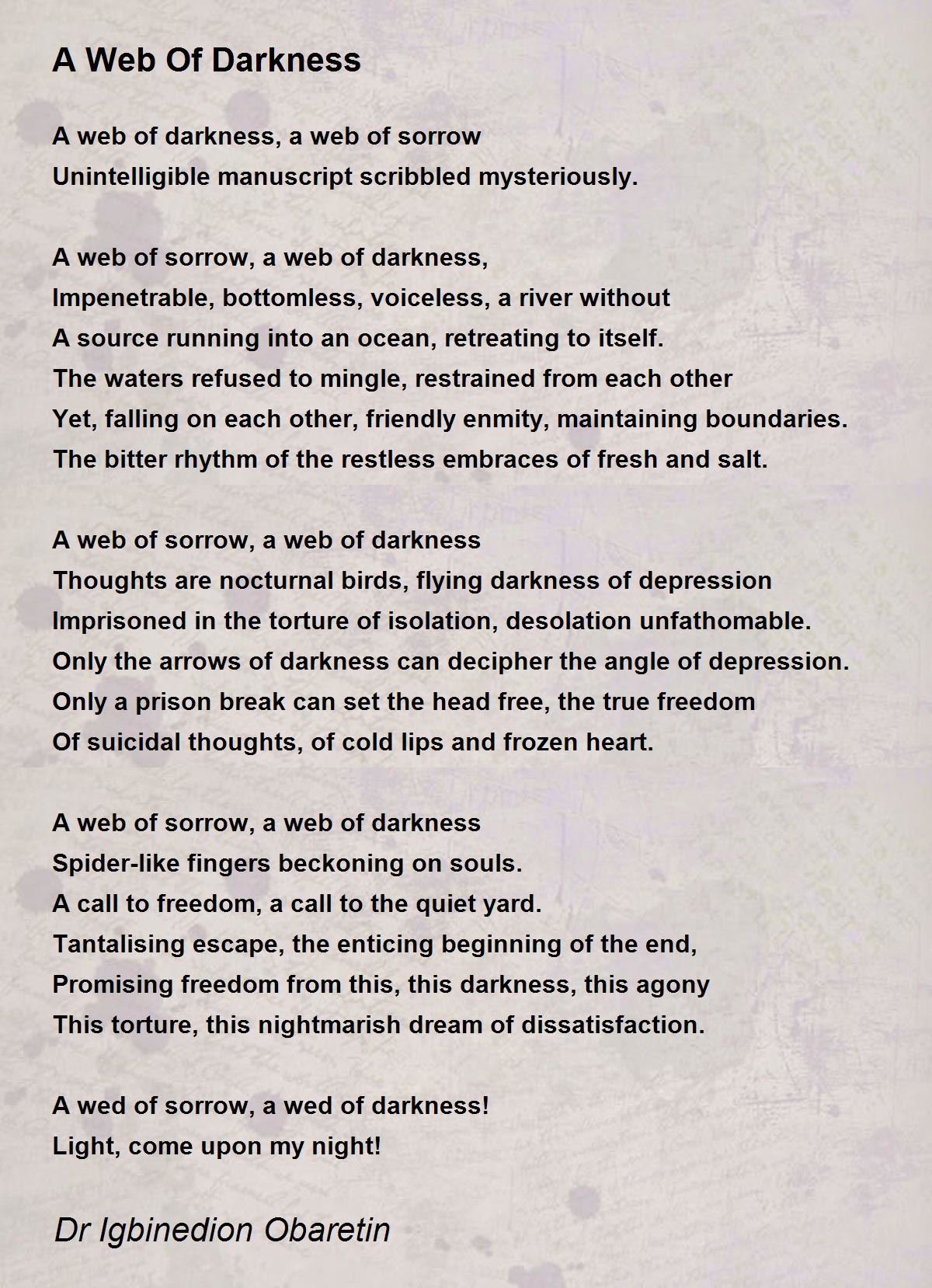 A web of sorrow, a web of darkness,