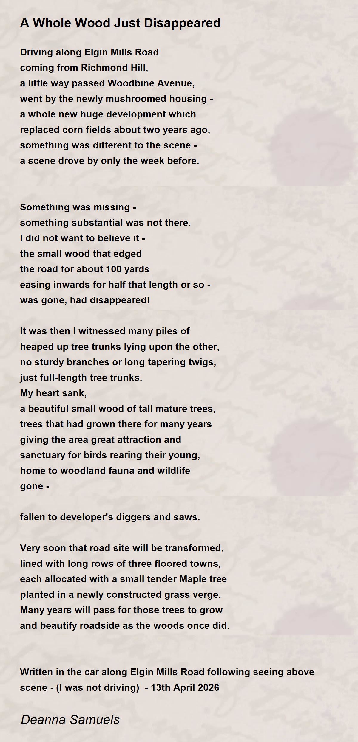 Written in the car along Elgin Mills Road following seeing above scene - (I was not driving) - 13th April 2026