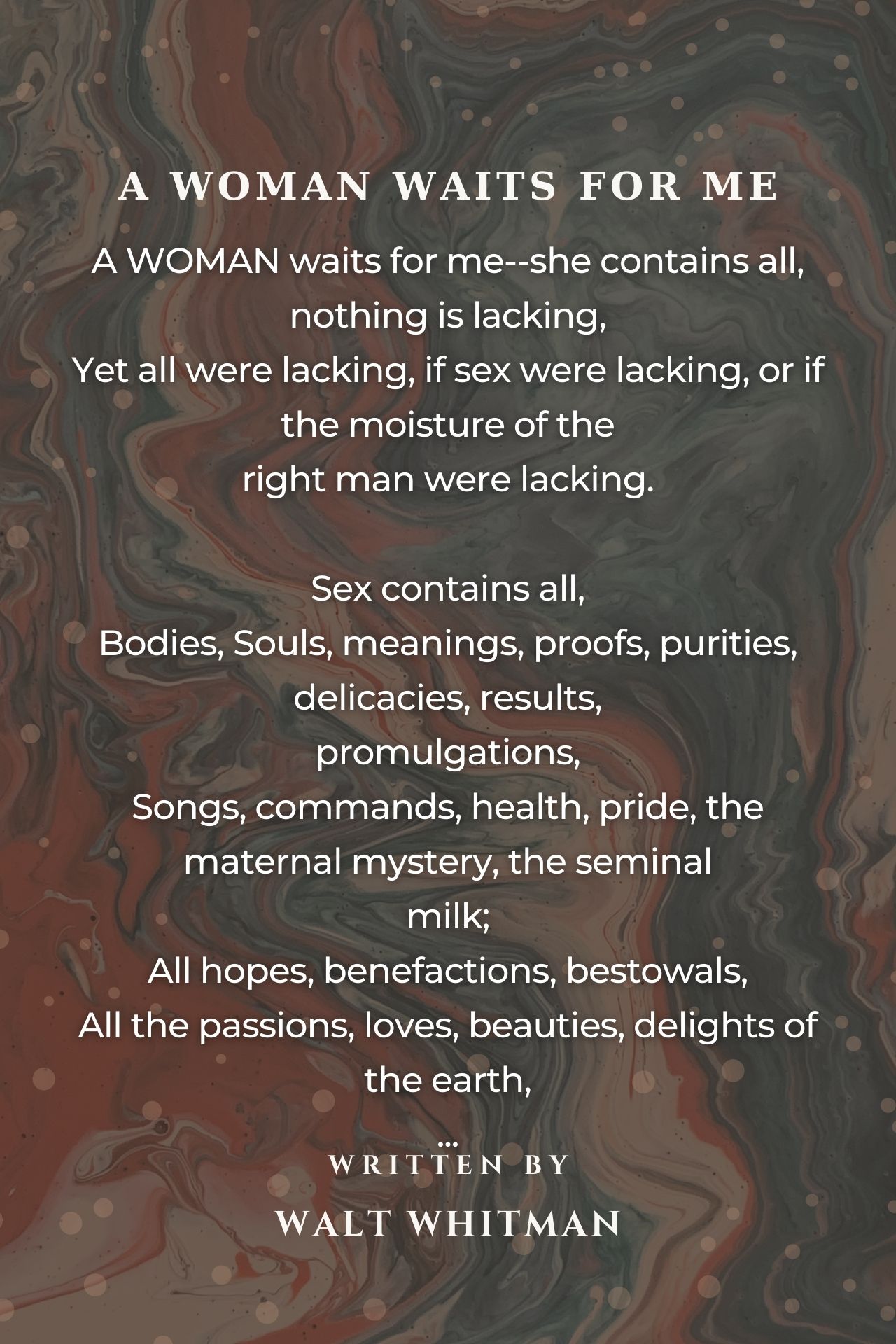ONE: ‘This poem by Walt Whitman describes how to forge the ideal relationship out of which the perfect offspring is born. This Whitman poem is not merely