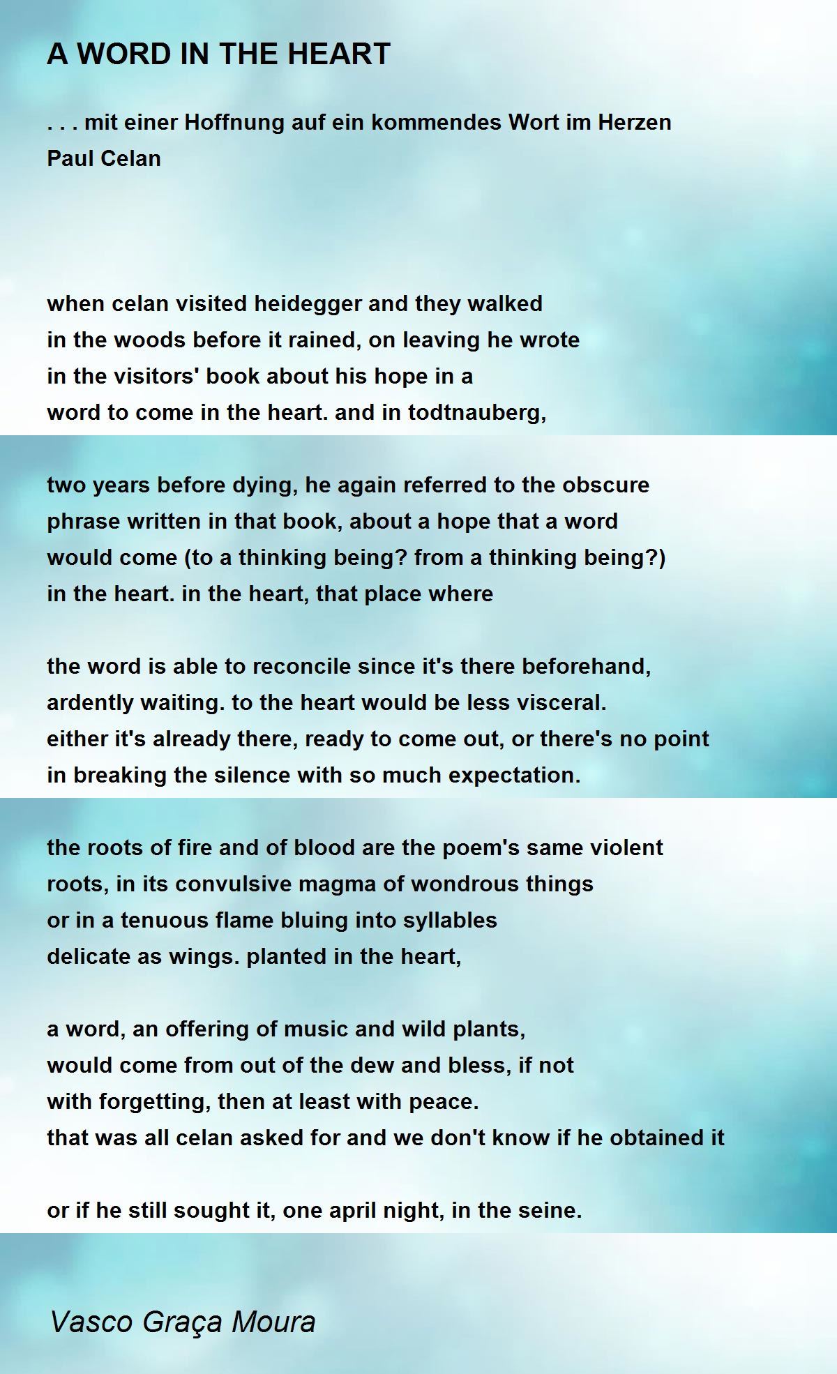 word to come in the heart. and in todtnauberg,