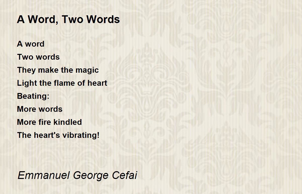 A word Two words They make the magic Light the flame of heart Beating: More words More fire kindled The heart's vibrating!