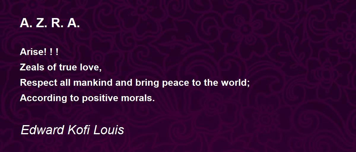 Arise! ! ! Zeals of true love, Respect all mankind and bring peace to the world; According to positive morals.