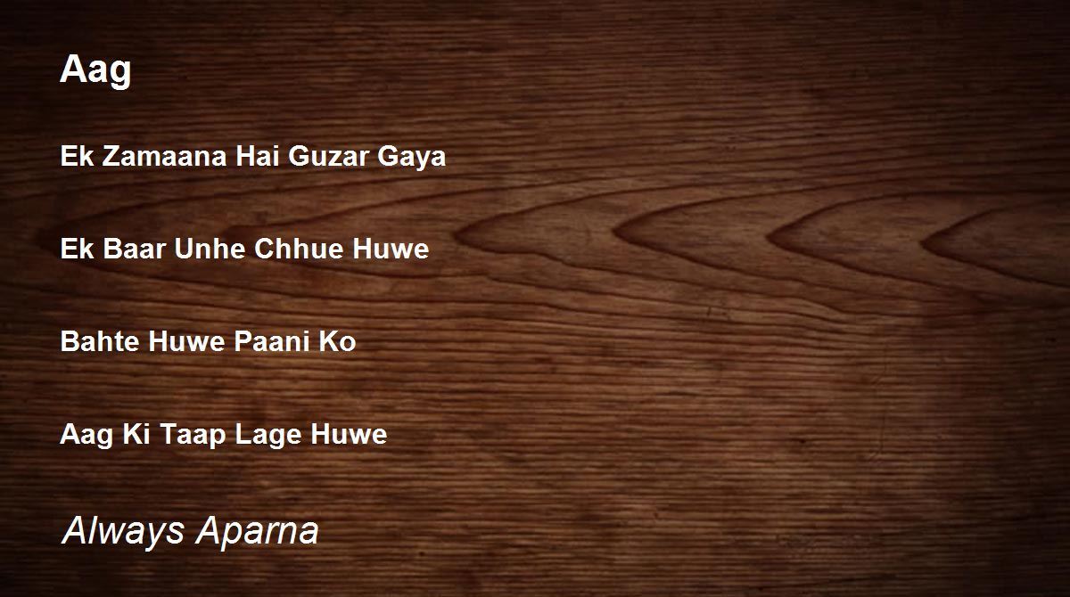 Ek Zamaana Hai Guzar Gaya Ek Baar Unhe Chhue Huwe Bahte Huwe Paani Ko Aag Ki Taap Lage Huwe
