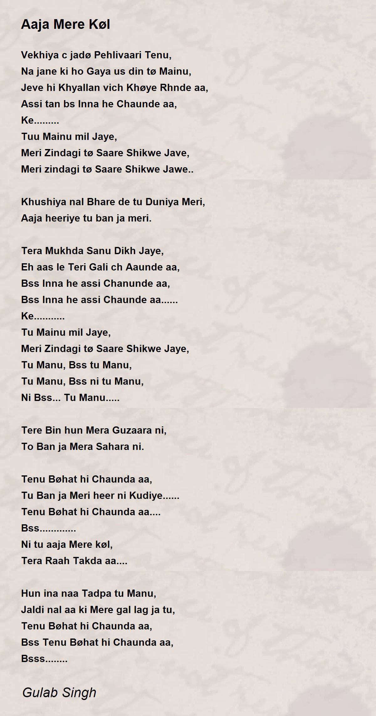 Awesome poem..... Tera Mukhda Sanu Dikh Jaye, Eh aas le Teri Gali ch Aaunde aa, Bss Inna he assi Chanunde aa,