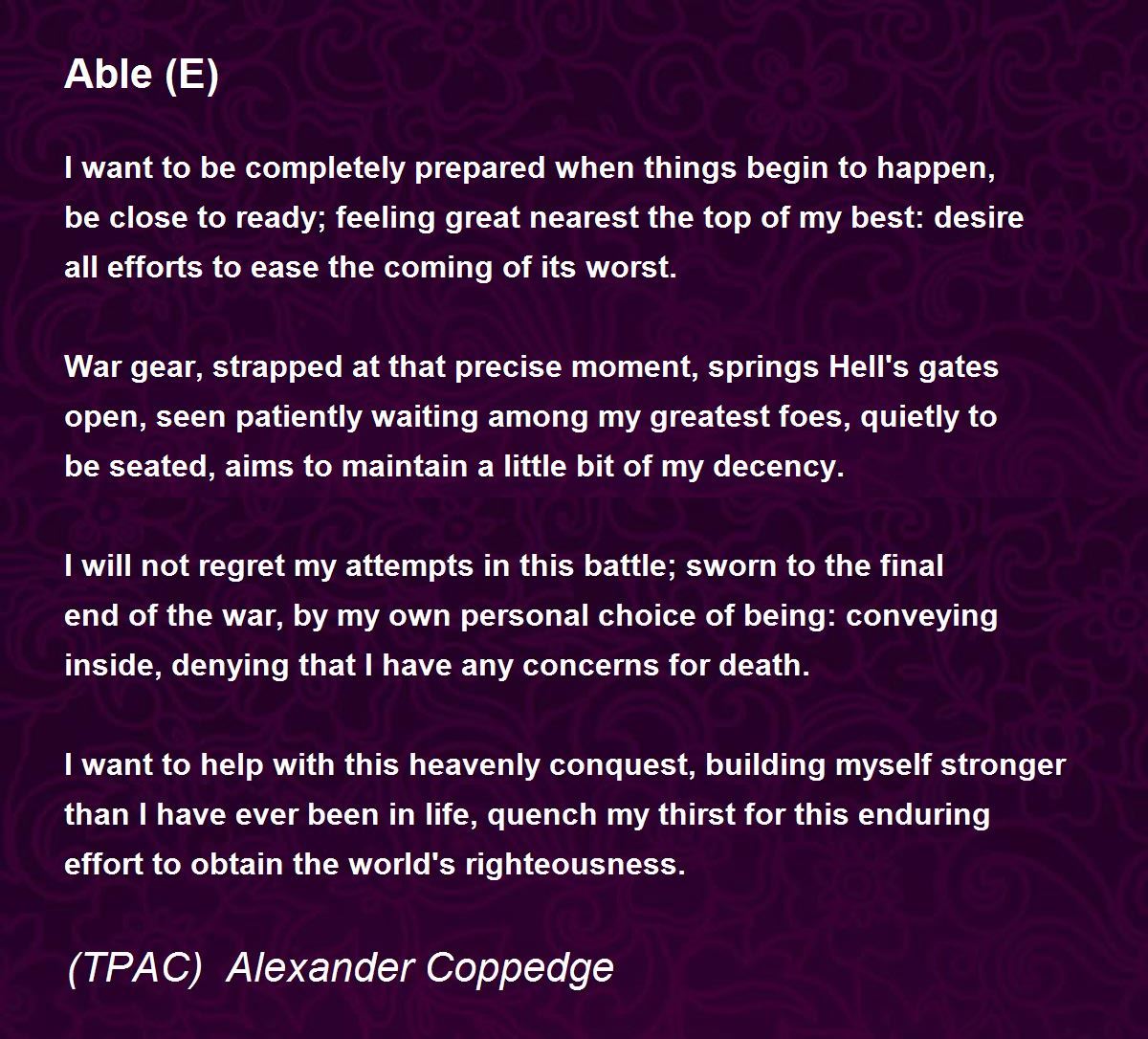 War gear, strapped at that precise moment, springs Hell's gates open, seen patiently waiting among my greatest foes, quietly to be seated, aims to maintain a little bit of my decency.
