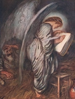 एक फ़रिश्ता सोने की किताब में कुछ लिख रहा था.