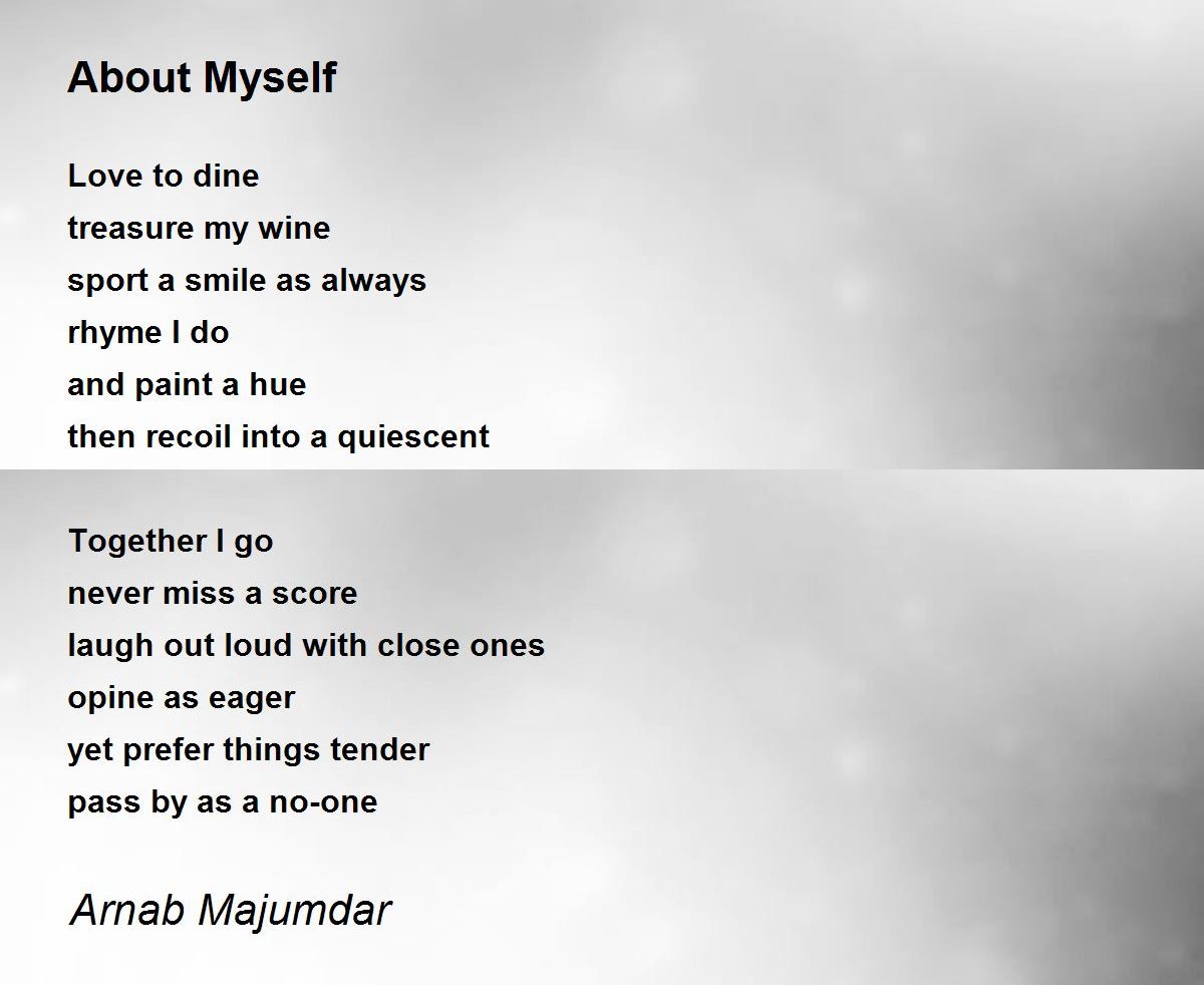To define oneself, and that too within the confines of 50 words, is not an easy task. Yet the poet has exactly done that, with ease. Thanks Arnab.