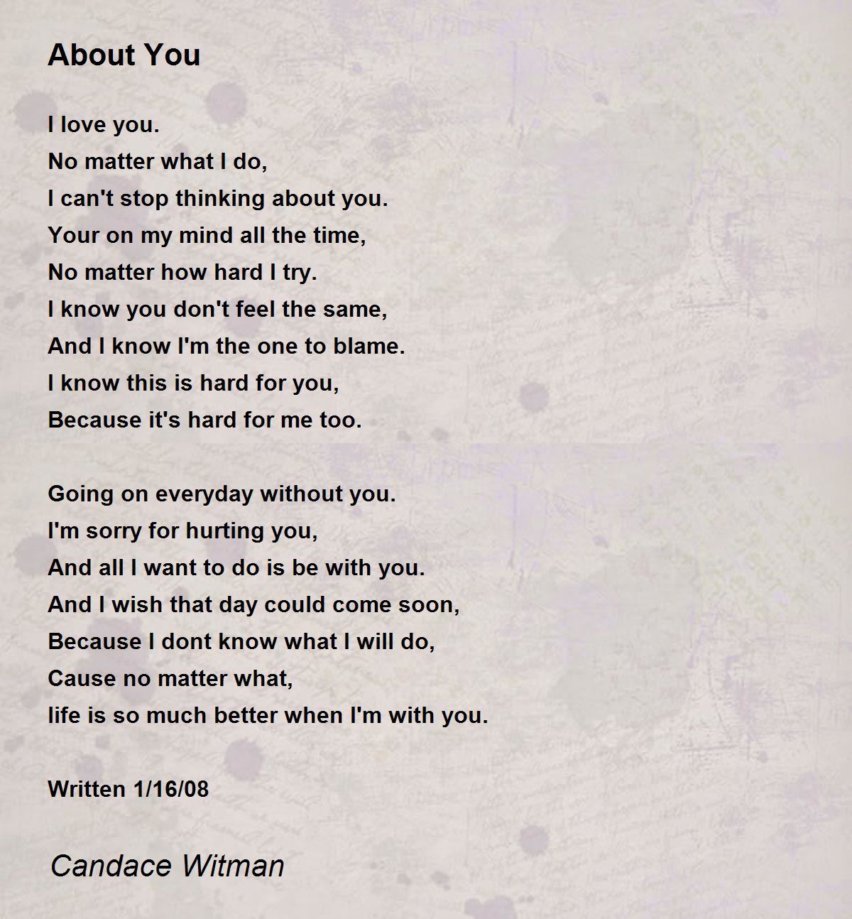 I can't stop thinking about you.
