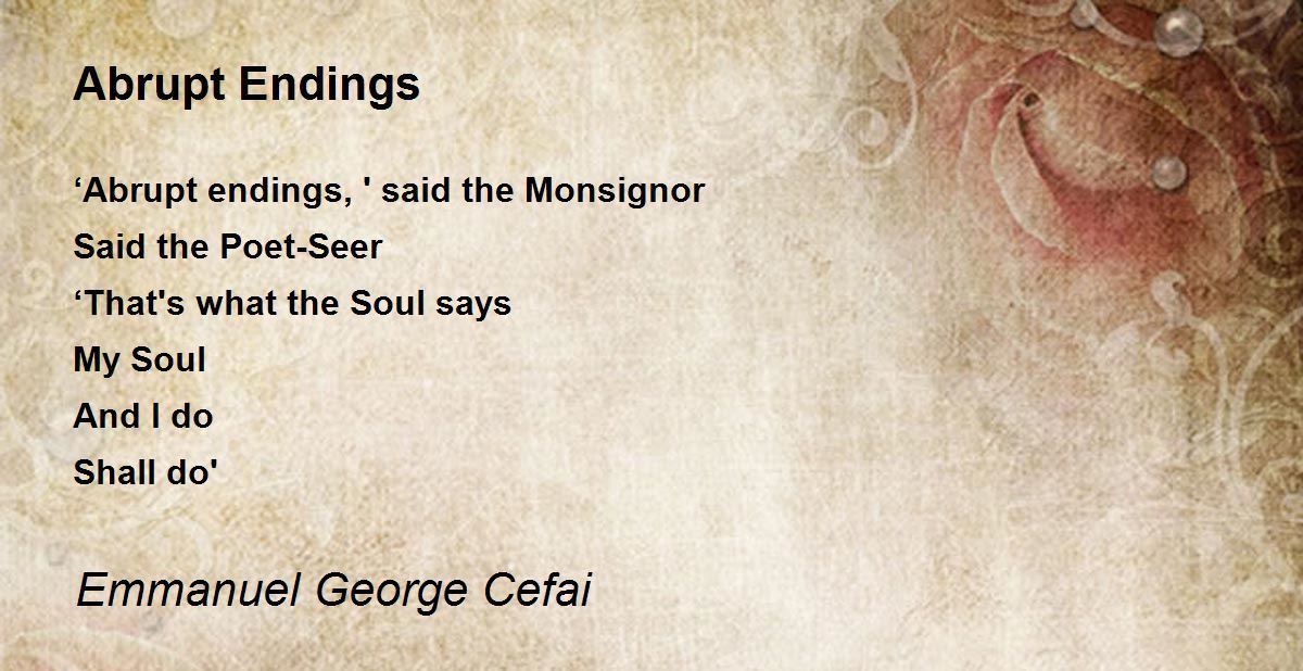 ‘Abrupt endings, ' said the Monsignor Said the Poet-Seer ‘That's what the Soul says My Soul And I do Shall do'