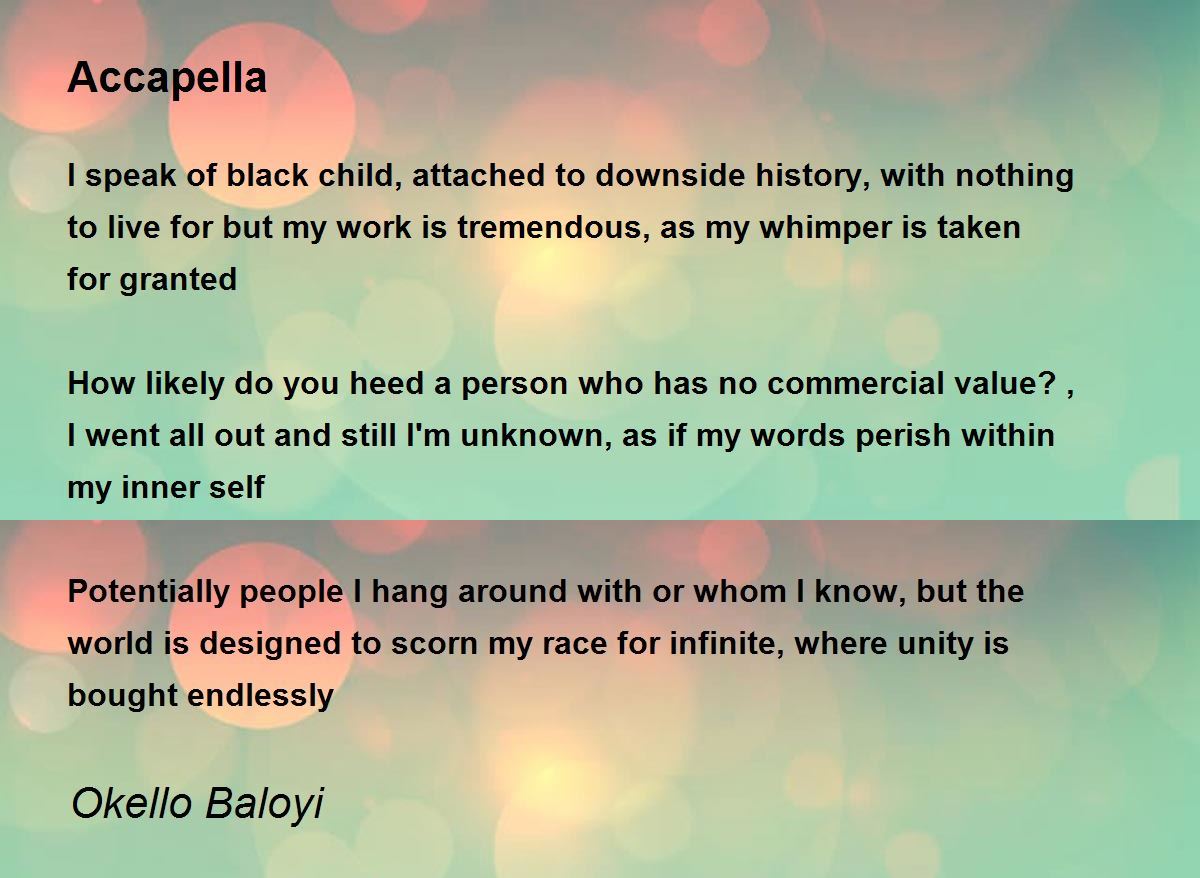 I speak of black child, attached to downside history, with nothing to live for but my work is tremendous, as my whimper is taken for granted