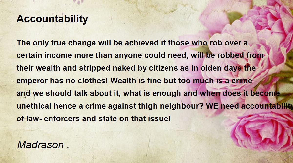 The only true change will be achieved if those who rob over a certain income more than anyone could need, will be robbed from their wealth and stripped naked by citizens as in olden days the emperor has no clothes! Wealth is fine but too much is a crime and we should talk about it, what is enough and when does it become unethical hence a crime against thigh neighbour? WE need accountability of law-enforcers and state on that issue!