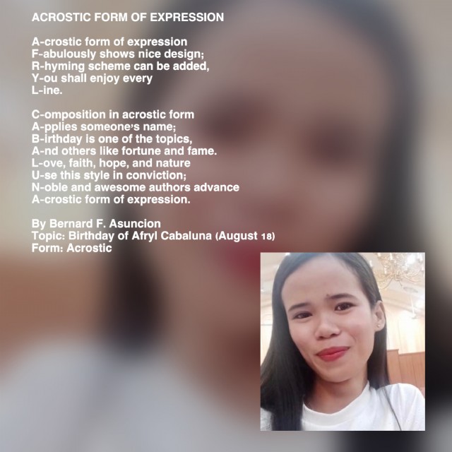 Topic: Birthday of Afryl Cabaluna (August 18)