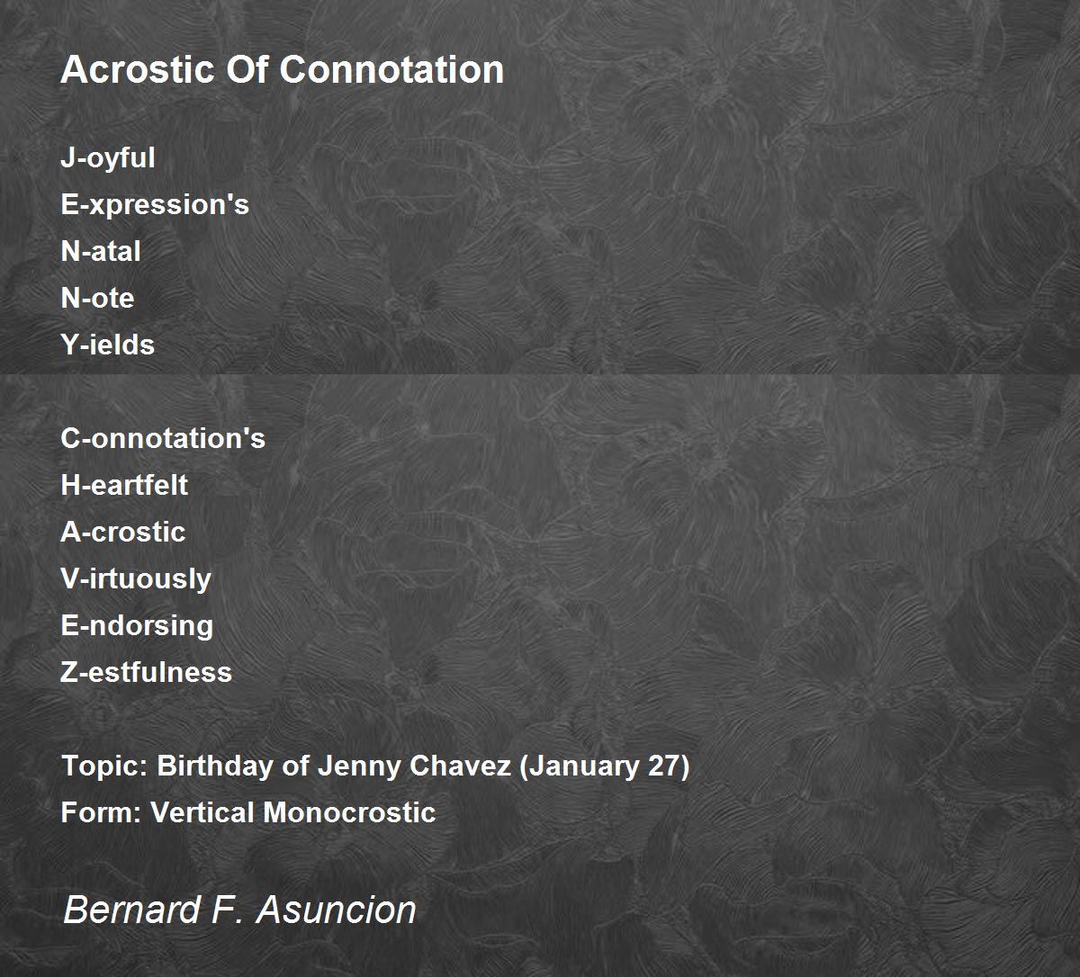 Topic: Birthday of Jenny Chavez (January 27)
