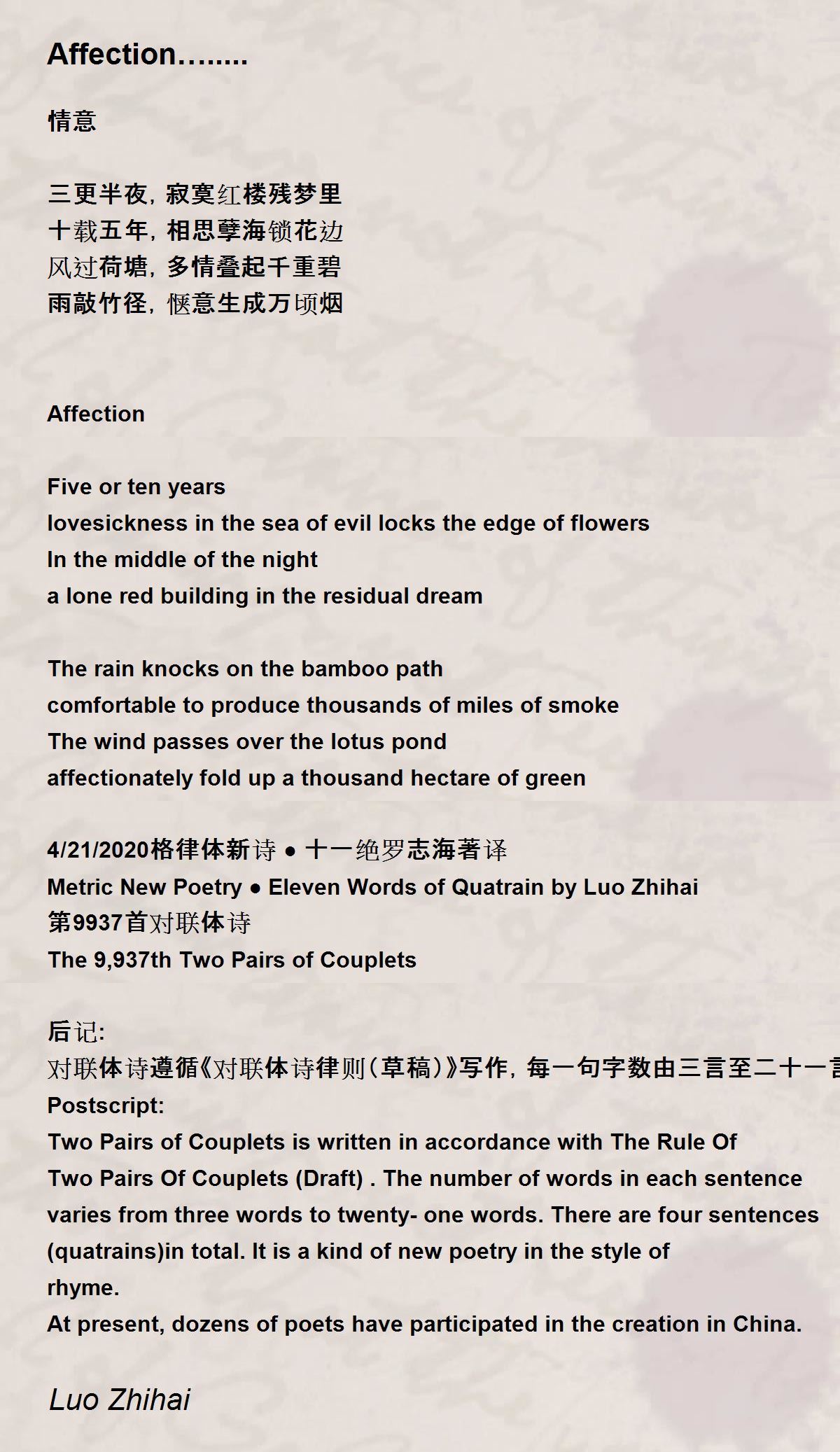 Metric New Poetry ● Eleven Words of Quatrain by Luo Zhihai