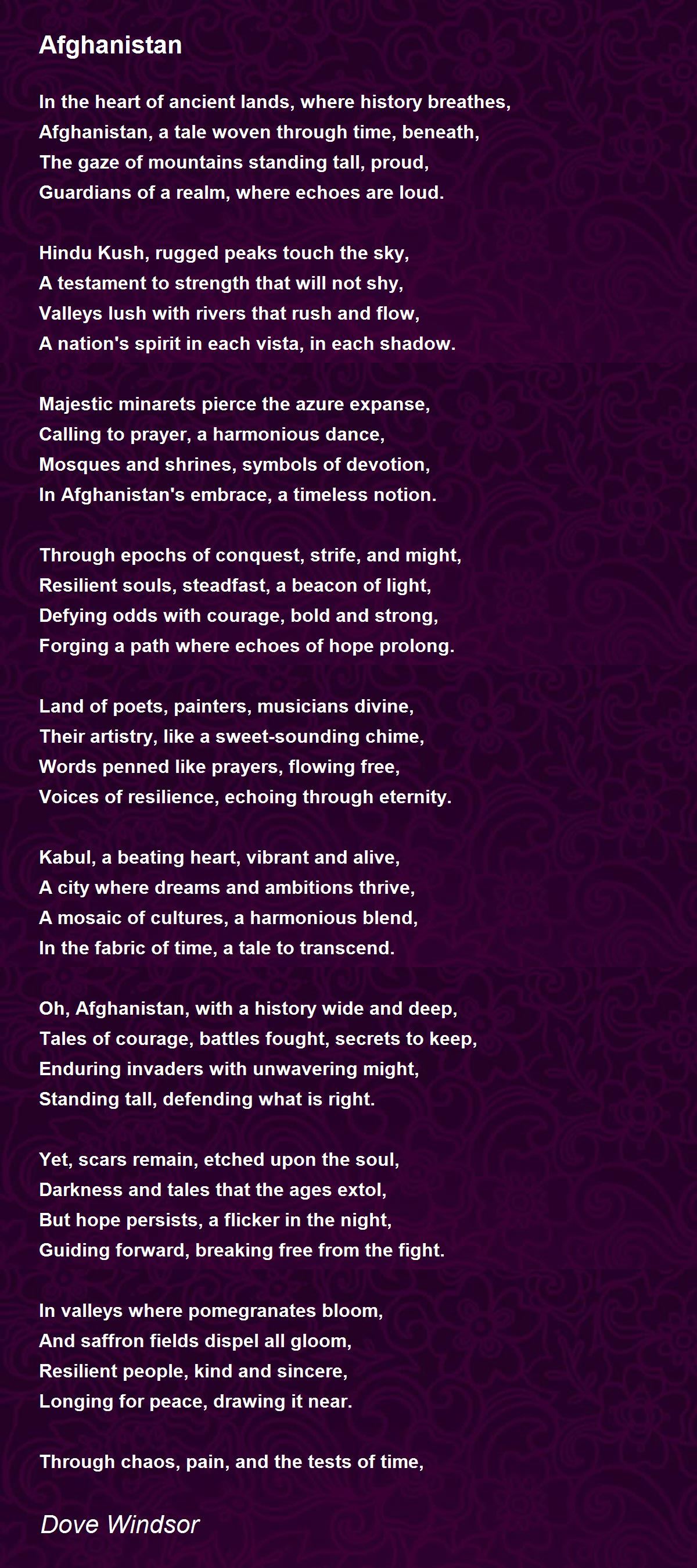 Oh, Afghanistan, with a history wide and deep,