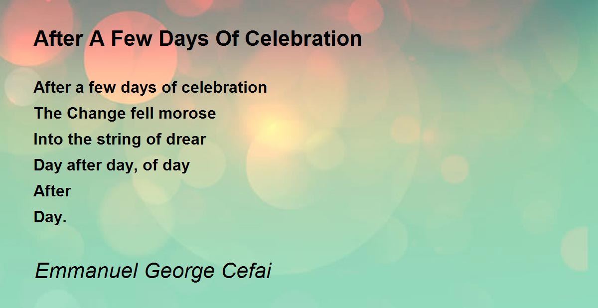 After a few days of celebration The Change fell morose Into the string of drear Day after day, of day After Day.