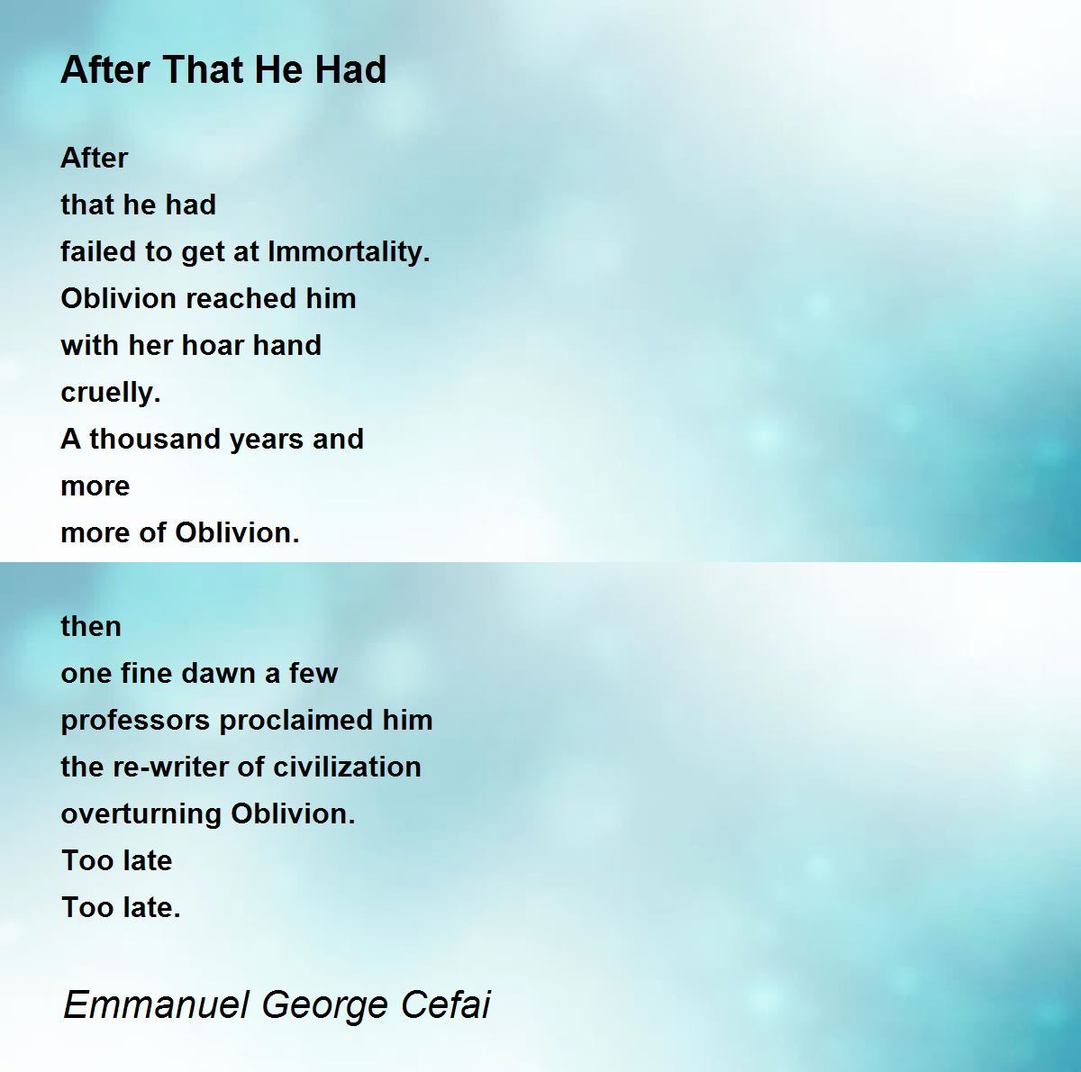 failed to get at Immortality.