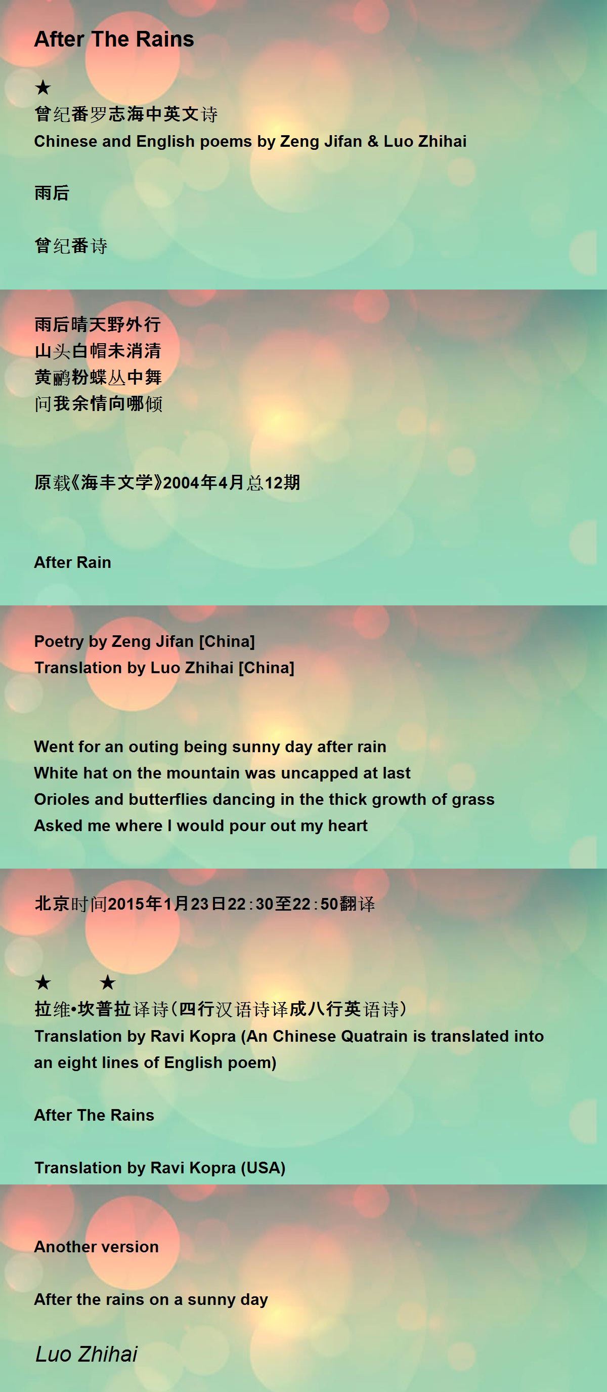 Luo Zhihai again translated Ravi Kopra's poem (An eight lines of English poem is translated into an eight lines of Chinese poem)