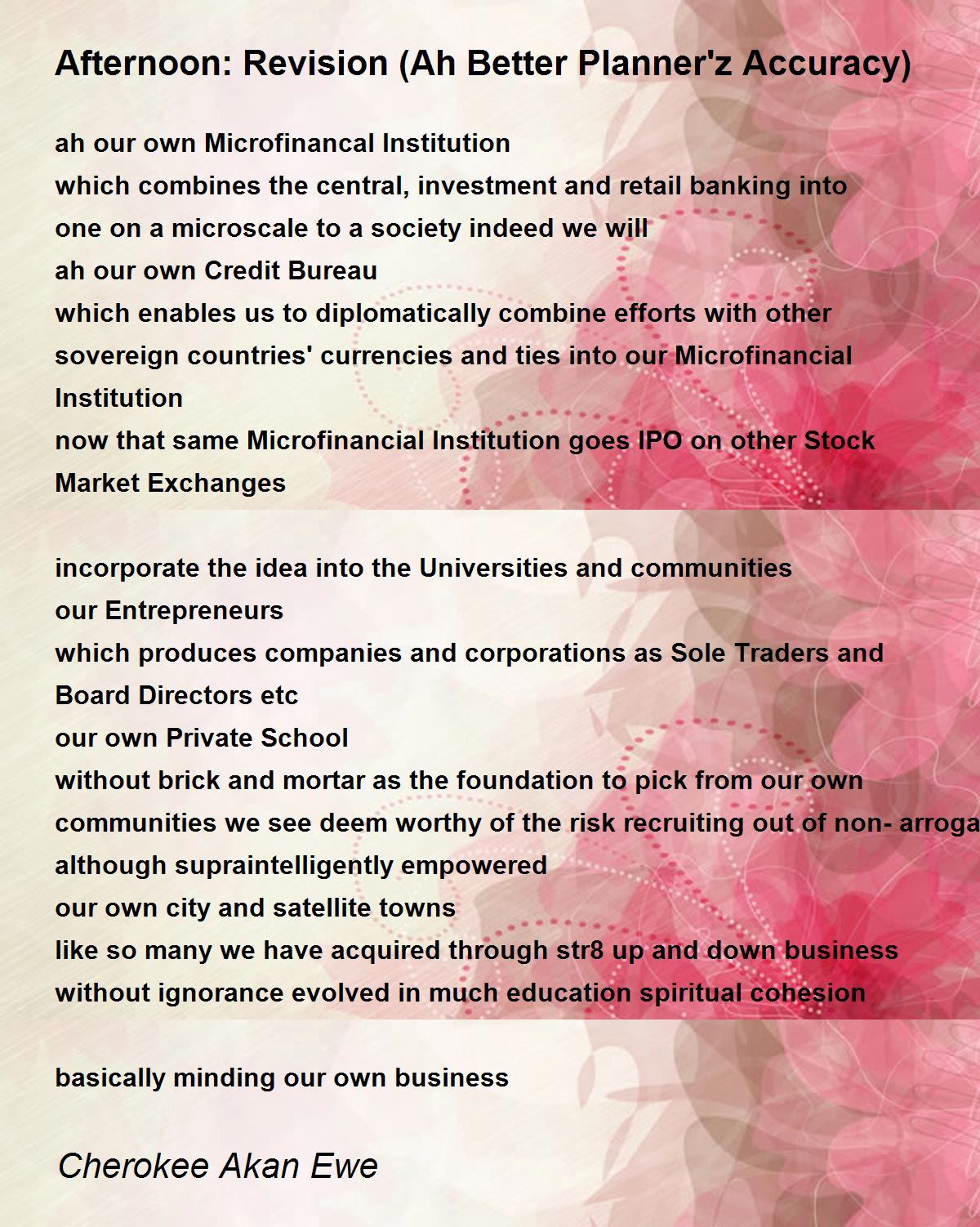 which enables us to diplomatically combine efforts with other sovereign countries' currencies and ties into our Microfinancial Institution