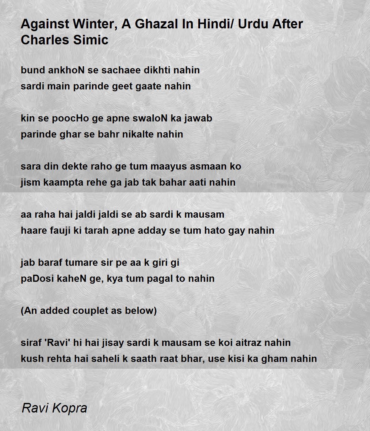 (An added couplet as below)