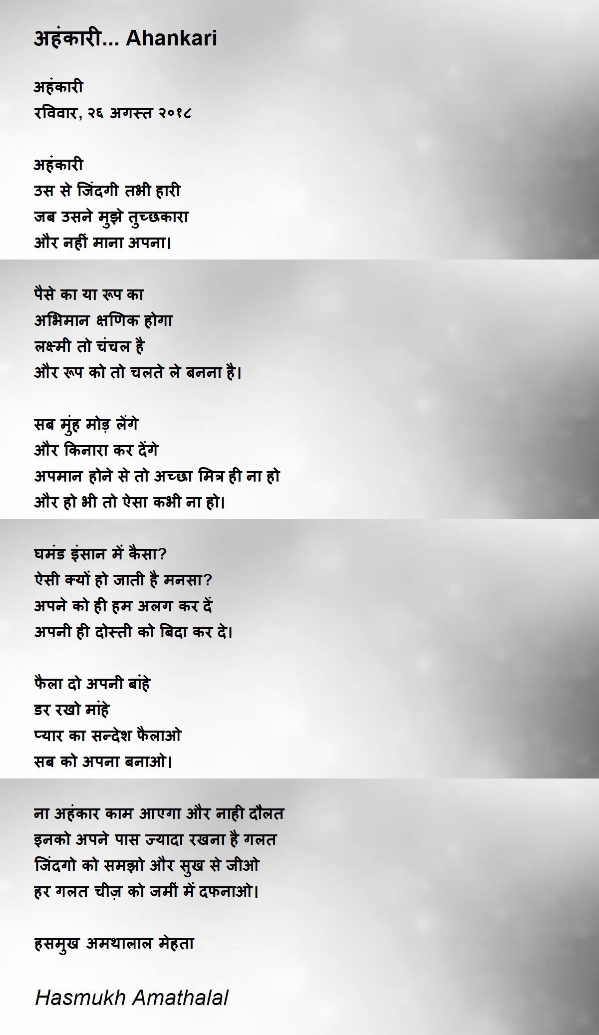 ना अहंकार काम आएगा और नाही दौलत इनको अपने पास ज्यादा रखना है गलत जिंदगो को समझो और सुख से जीओ हर गलत चीज़ को जमीं में दफनाओ। हसमुख अमथालाल मेहता