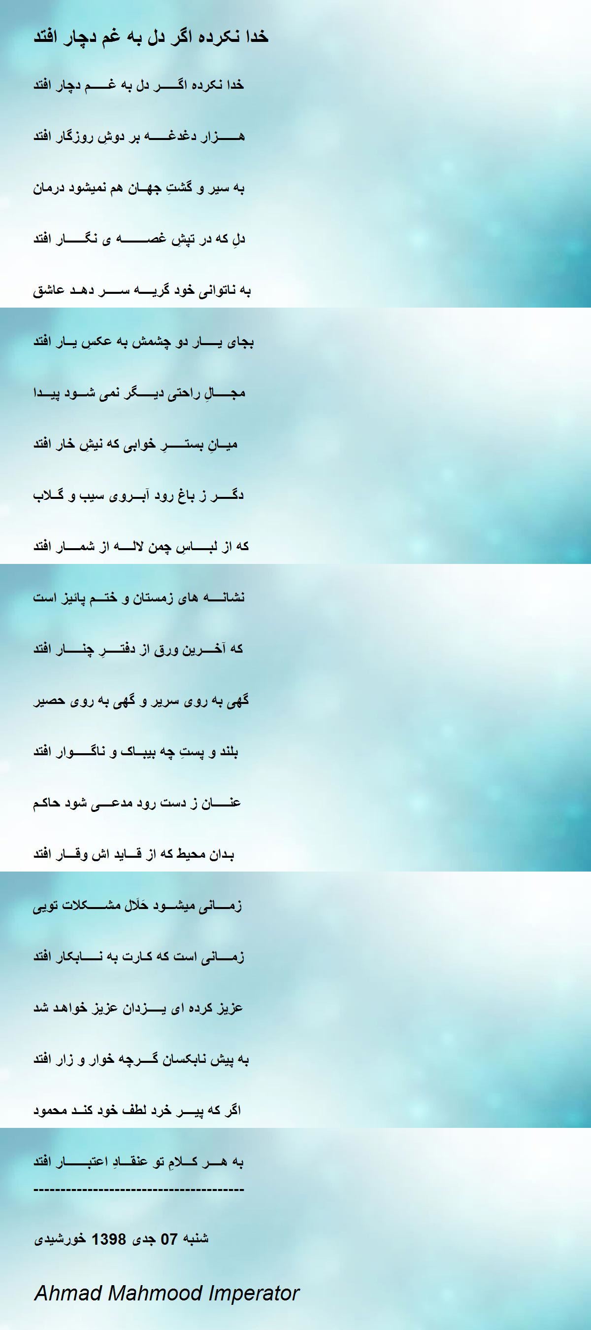 خدا نکرده اگــــــر دل به غــــــم دچار افتد