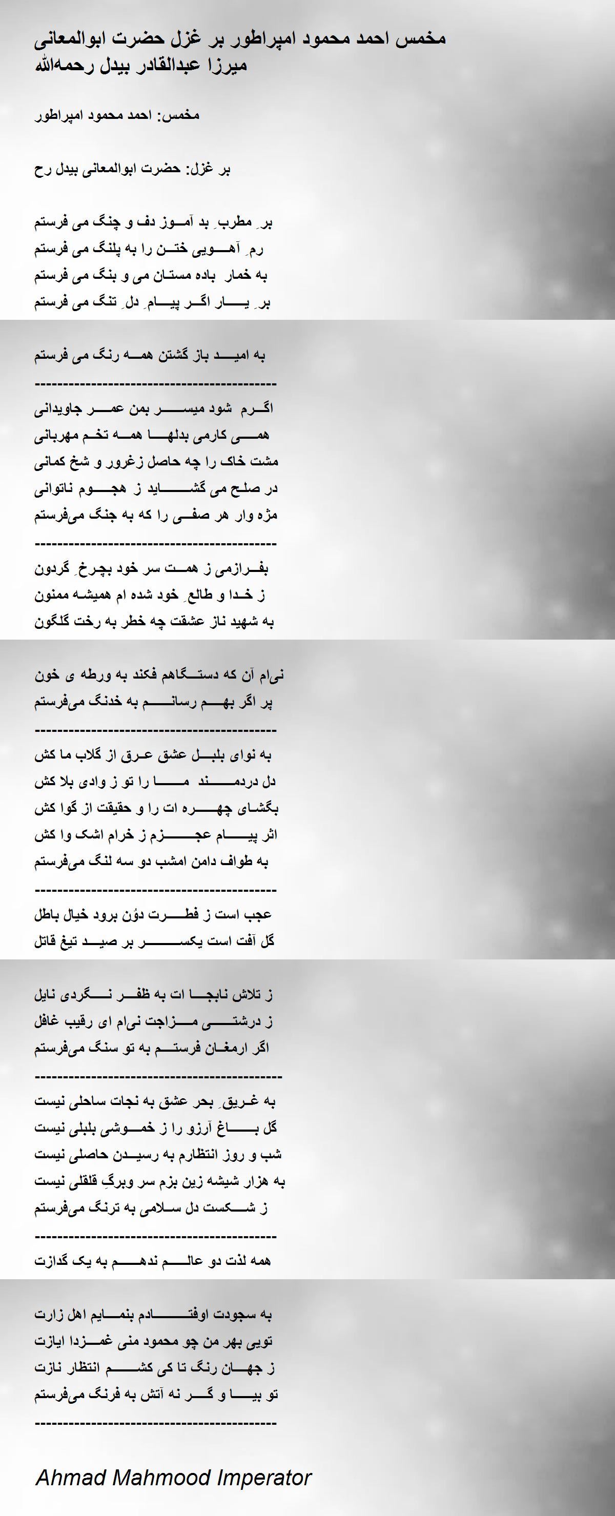 دل دردمنــــــــــد 'محمود' شده ناصبور بیدل