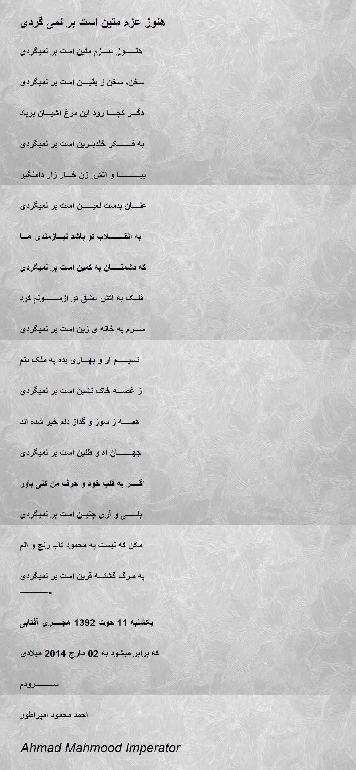 هنــــــوز عــــزم متین است بر نمیگردی